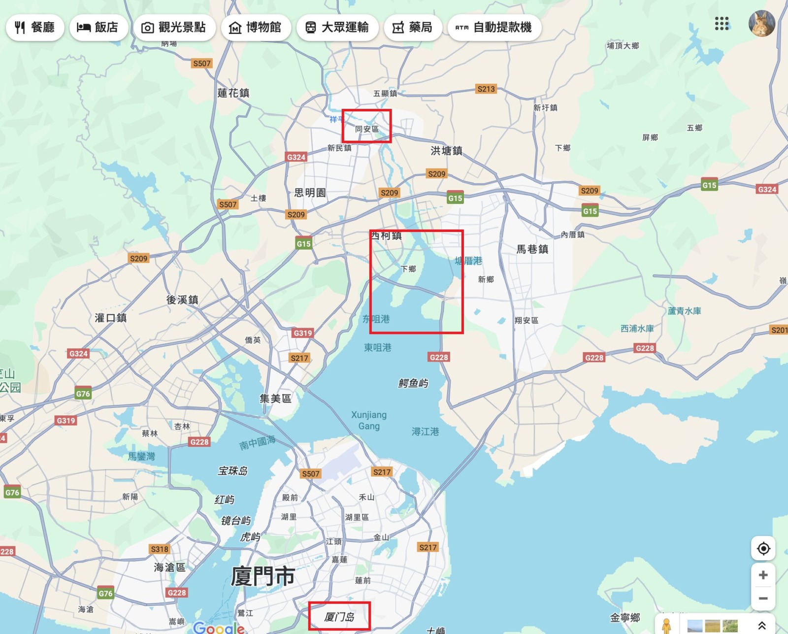 上Google Map看同安的地理位置。同安的出海口居然也有個狀似社子島名為下鄉的沙洲;開台祖選在社子島落地深根,或許不是偶然!