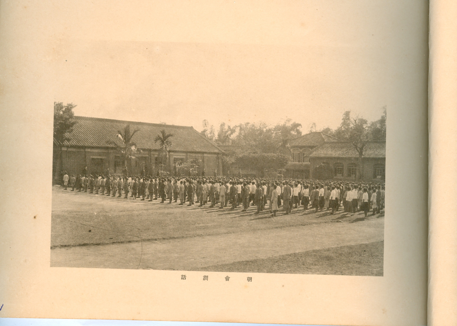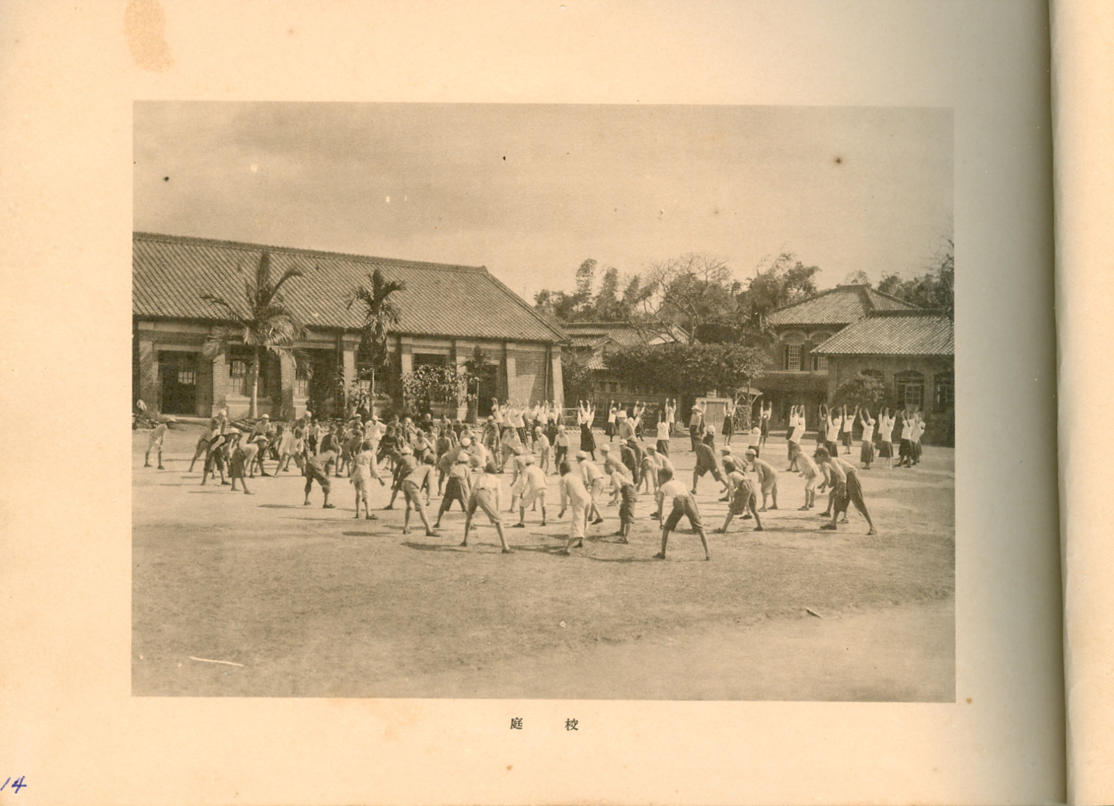 圖中男女學生進行不知名的活動。詢問chatgpt,回答是廣播體操。chatgpt:“這張老照片中,學生們正進行的是日本式「廣播體操」(Radio Taiso/ラジオ体操)。這套體操最早於1928年由日本引入,目的在提升國民健康與團體意識,很快就廣泛應用於學校、軍隊與職場等各種日常情境”