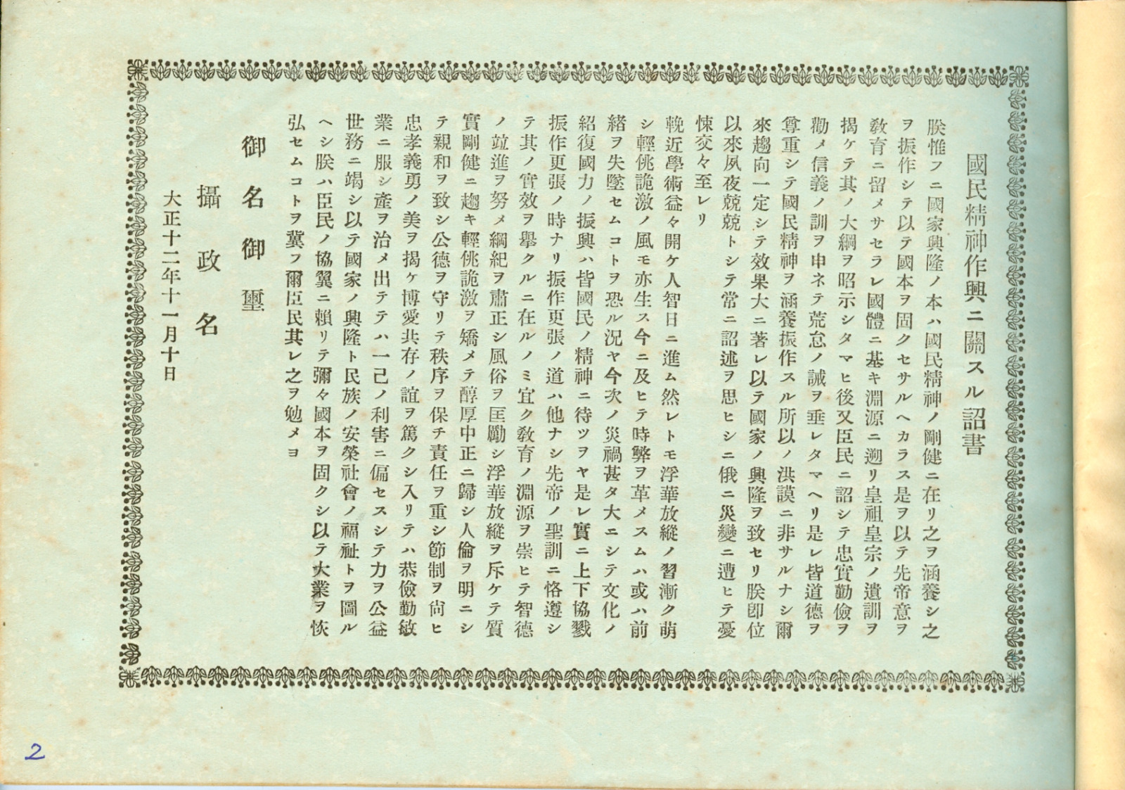 畢業紀念冊,第一頁是明治天皇的教育敕語,左側有宋獻聲的小印。