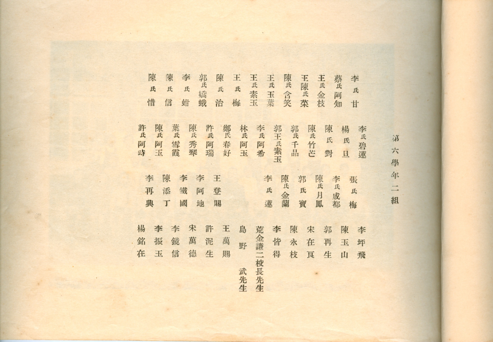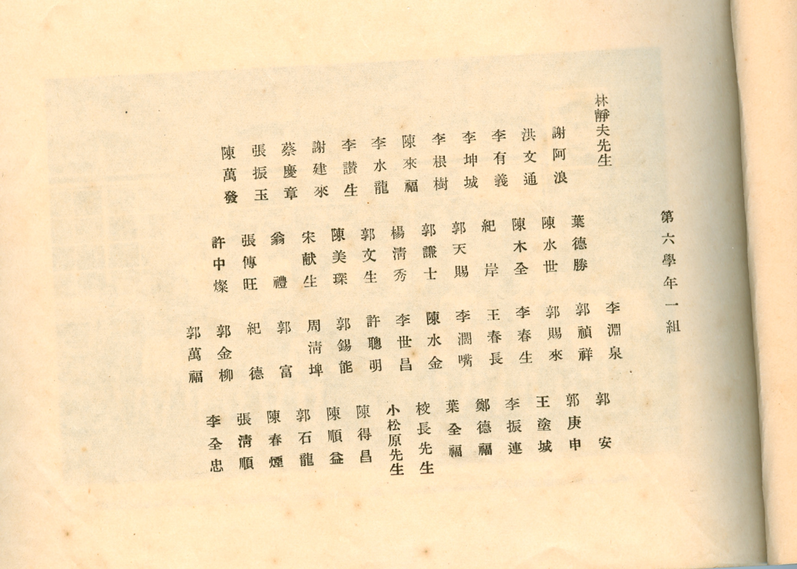第五頁教職員一覽。看了一陣子才發現,裡面的姓名編排,會和下一頁的照片對應。其中郭林田是阿嬤的父親。