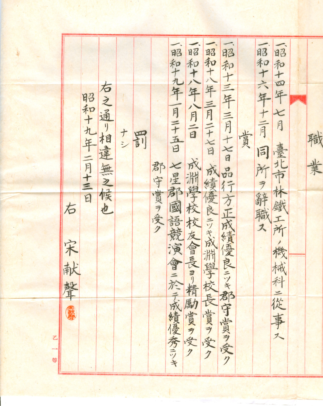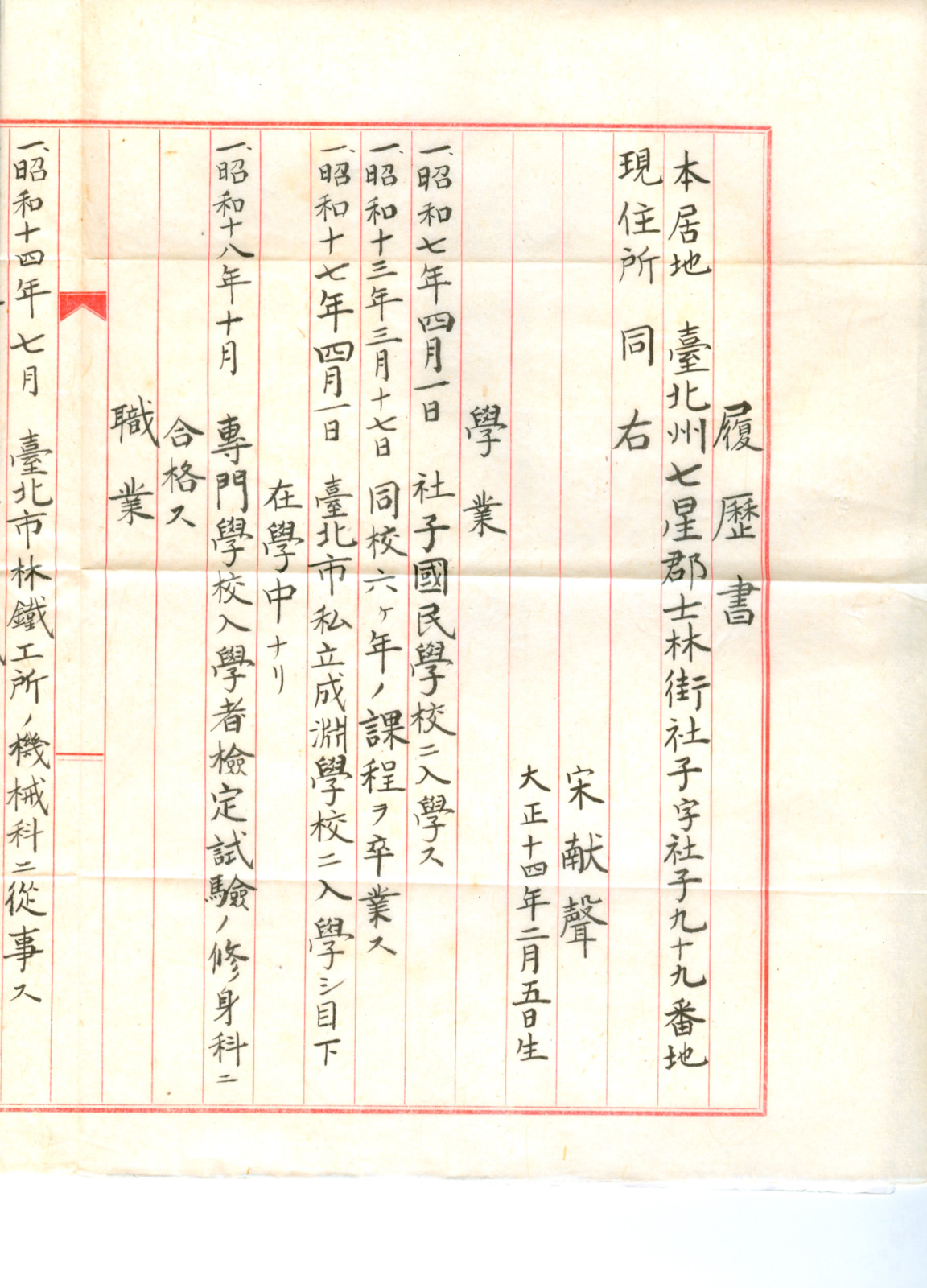- 整理遺物才知道,阿公的爸爸宋德銓在鐵道部做維修技師。推測是安排阿公學習鐵工的緣由。